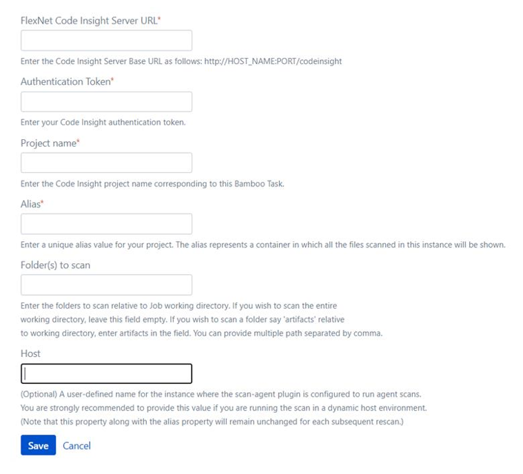 7. Enter the following information in the FlexNet CodeInsight Scan Task Configuration window: